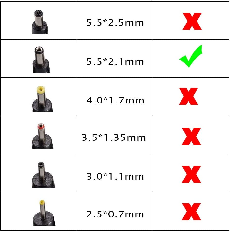- プラグサイズ:出力プラグ外径5.5mm、内径2.1mmで、プラグサイズが5.5mm×2.1mmである電器に共用です、ご使用の前、接続機器のプラグサイズをご確認ください。